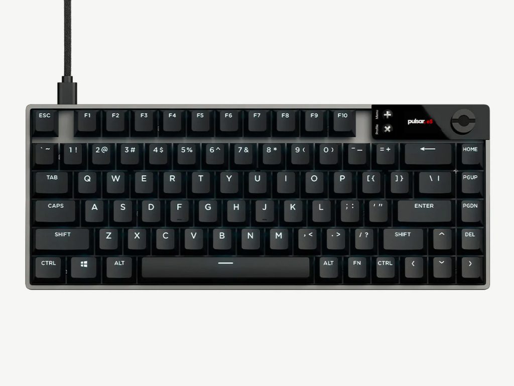 Pulsar đã từng phát hành các bàn phím Hall effect chất lượng, nhưng eS HE 70 là model eSports “đúng nghĩa” đầu tiên của hãng. Điểm nổi bật lớn nhất là màn hình và núm điều khiển tích hợp. Chúng cho phép người chơi điều chỉnh các cài đặt như điểm kích hoạt, rapid trigger và macro ngay trên bàn phím mà không cần cài đặt phần mềm. Pulsar khẳng định việc điều khiển tích hợp này không chỉ giúp tùy chỉnh dễ dàng hơn mà còn mang lại lợi thế cho game thủ tại các giải đấu, nơi việc cài đặt phần mềm thường bị hạn chế.